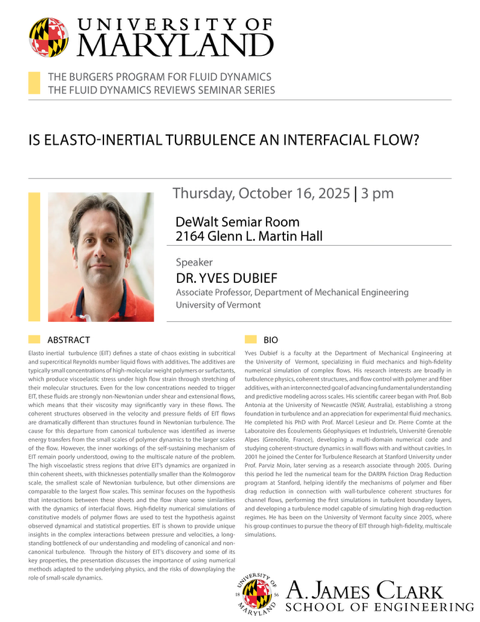 Turbulence, Intermittency, and Flight DeWalt Seminar Room 2164 Glenn L. Martin Hall |